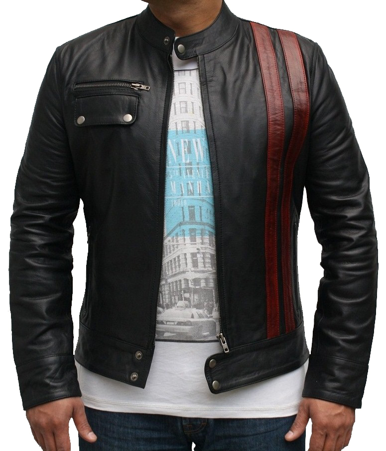 70s inspired, cafe racer style retro jacket. A Grade High Quality cow hide 1.3mm leather Jacket,Fitted waist length.Red leather stripe detail.