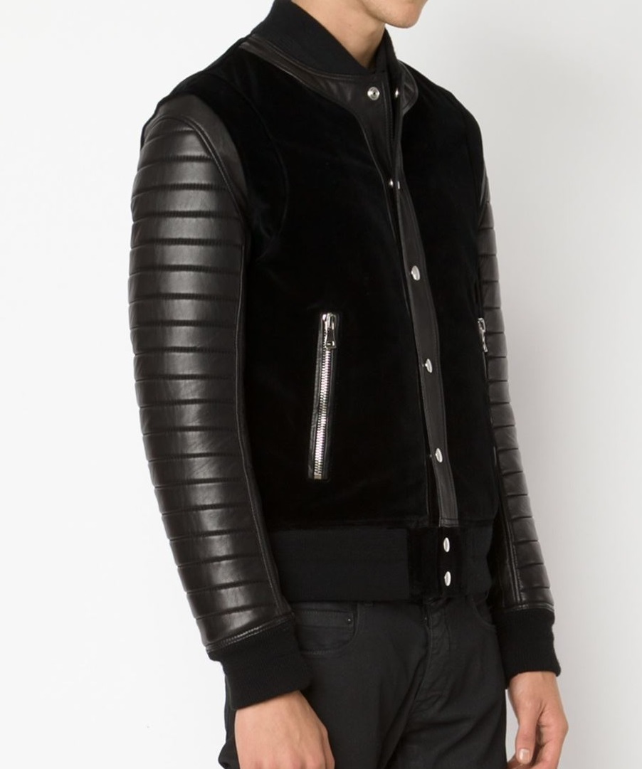 Velvet & Black Leather Bomber Jacket.